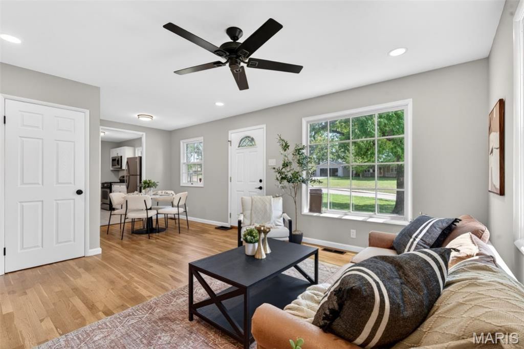 Welcome to 12131 McKelvey Road in Maryland Heights... where thoughtful updates meet timeless charm. This beautifully renovated 3-bedroom, 2-bath ranch has been completely refreshed and is move-in ready with a clean, modern aesthetic throughout.Step inside to find a bright and inviting living space filled with natural light, complemented by refinished wood flooring, fresh neutral paint, and updated lighting. The open flow between the living room and dining area creates an ideal space for both everyday living and entertaining.The kitchen has been fully updated with crisp white cabinetry, granite countertops, stainless steel appliances, stylish subway tile backsplash, and modern fixtures... delivering both function and a fresh, contemporary feel.The main level offers three comfortable bedrooms and an updated full bath, while the finished lower level expands your living space with a large recreation area, wet bar, full bathroom, and flexible space perfect for a home office, gym, or craft area.One of the standout features is the oversized garage... offering exceptional room for vehicles, storage, hobbies, or workshop space. The long driveway provides plenty of off-street parking, and the backyard offers a private, tree-lined setting with green space and a patio for outdoor enjoyment.With major updates already completed, this home offers peace of mind along with style and functionality. Conveniently located near I-70 and I-270, you'll enjoy easy access to shopping, dining, and commuting routes.This is the one you've been waiting for... fully updated, functional, and ready to welcome you home. Schedule your showing today.