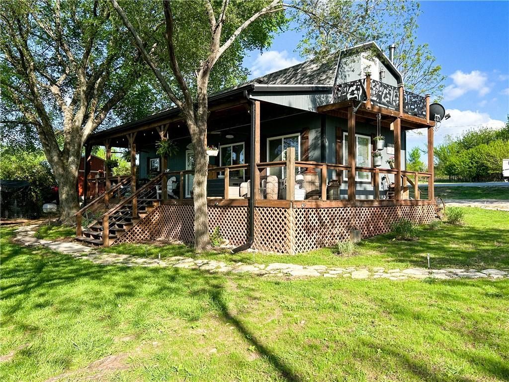 Welcome to 134 North Linn Valley Drive, an adorable, custom-built lakefront retreat completed in 2022! This charming 2-bedroom, 2-bath home sits on three lakefront lots on the 5-acre lake , offering extra space, privacy, and room to enjoy lakeside living.Designed for relaxation and outdoor enjoyment, the property features a spacious covered deck, perfect for taking in stunning sunset views over the water. Two storage sheds provide ample space for lake gear and tools. One shed even offers guest quarters with a kitchenette, and its own deck for added entertaining or relaxation space.Whether youre looking for a weekend getaway or a full-time residence, this home delivers comfort, functionality, and unbeatable lake access. Located in the highly sought-after Linn Valley Lakes community, youll enjoy all the amenities and the vibrant lifestyle that make this area such a hot destination.Dont miss your chance to own a slice of lakefront paradise!