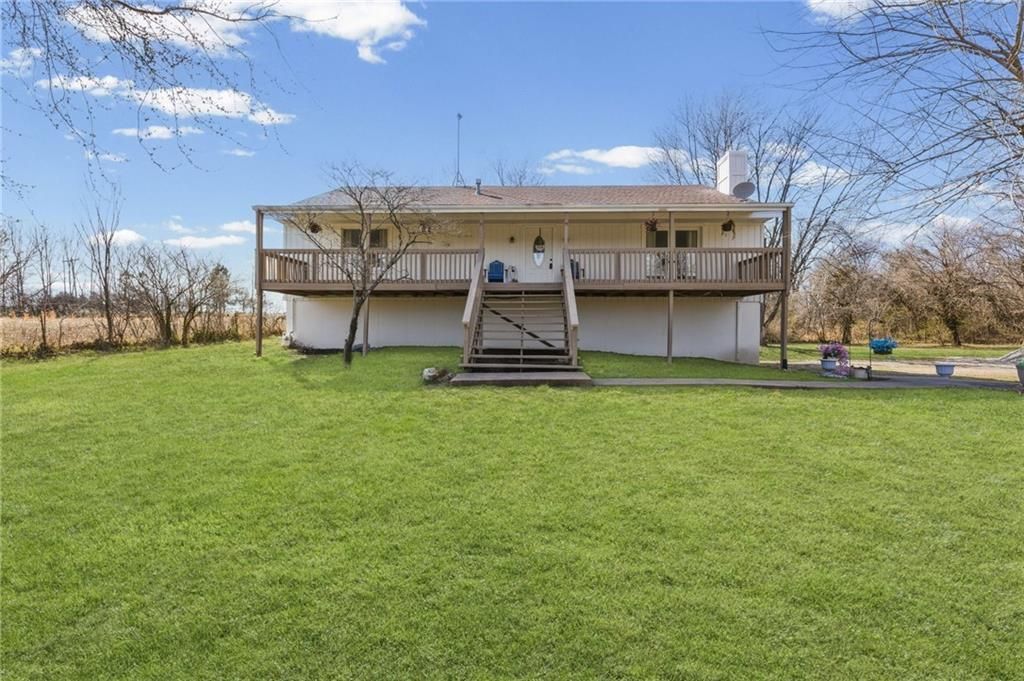NO NEIGHBORS! NO HOA! PERFECT SPOT TO BUILD A WORKSHOP OR OUTBUILDING ON PAVED ROADS! Welcome home to your own private retreat! Tucked back in the trees- sitting on .81 acres, this peaceful property is surrounded by open farmland and shaded by mature fruit trees and berry bushes, offering both beauty and privacy.Enjoy quiet mornings on the massive covered front porch, or entertain on the expansive back deck, accessible from both the living room and the primary bedroom?perfect for relaxing, hosting gatherings, or enjoying evening sunsets.Inside, youll find a bright, open floor plan filled with natural light, creating a warm and inviting atmosphere throughout. The home features five generously sized bedrooms, including two on the main level and three additional bedrooms with a full bath on the lower level.The fifth bedroom offers walk-out access, making it ideal for guests, extended family, a home office, second living space, or a private studio?perfect for multi-generational living or flexible use of space.This is a rare opportunity to own a private, nature-filled retreat with room to spread out and enjoy peaceful surroundings. A brand-new driveway entrance will be installed for added convenience.INCREDIBLE LOCATION! Basehor-Linwood School District, Leavenworth County. Minutes from highway access! Country vibes- minutes from everything!Come see this hidden gem for yourself!