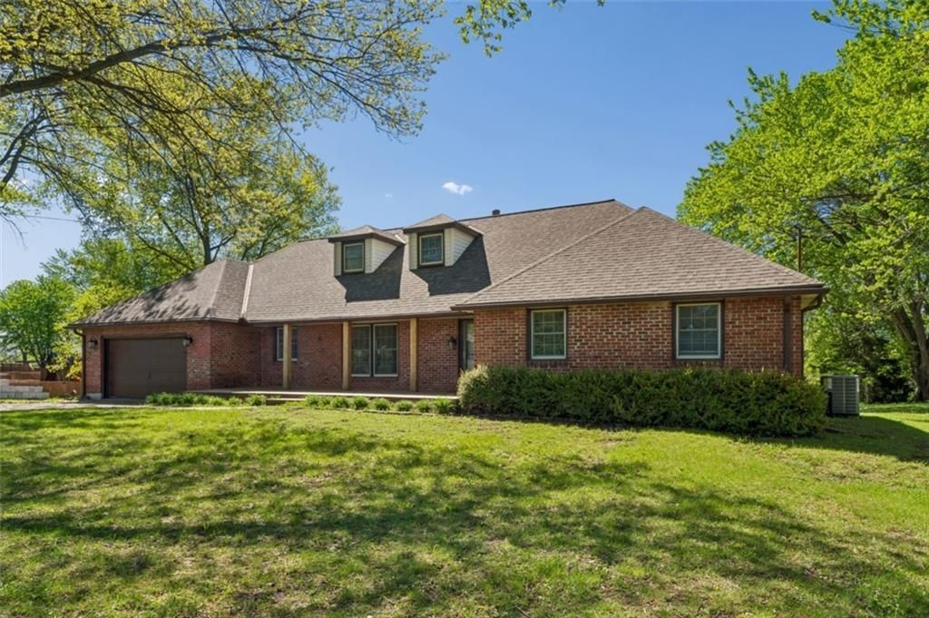 Updated all-brick 1.5-story ranch on approximately 6 acres, offering the perfect blend of peaceful acreage and everyday convenience, complete with a 40x30 outbuilding/barn and a scenic pond. The home features 4 bedrooms, 2 full baths, and 2 half baths. The main level welcomes you with a covered front porch and inviting living spaces, including a living room with dining area and a cozy family room with fireplace and stove insert. Just off the family room, step out onto the large covered deck?an ideal spot to relax, entertain, or take in the surrounding views. The remodeled kitchen is designed for both function and style, featuring new cabinetry, hardware, granite countertops, eat-at bar seating, stainless steel appliances, and an adjoining butlers pantry with additional storage. Main-floor laundry offers abundant cabinet space for added convenience. The main level also includes 3 bedrooms, including a private primary suite with its own full bath. Upstairs provides a spacious additional bedroom along with a large bonus room perfect for a home office, hobby space, or flexible living area. The walkout lower level expands your living space with a large family room featuring a second fireplace, a wet bar for entertaining, a half bath, and direct access to the patio. Additional highlights include a 2-car attached garage on the main level, a 2-car rear-entry built-in garage, and numerous updates throughout, including LVP flooring, new carpet in bedrooms, fresh interior paint, updated lighting, ceiling fans, plus a new furnace and central air. A rare opportunity to enjoy space, comfort, and versatility?all in a convenient location.