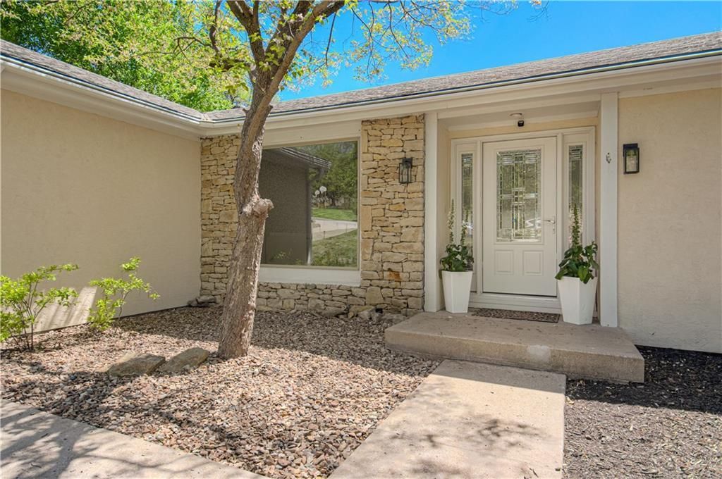 Nestled on a scenic 1-acre lot with peaceful water views, this beautifully maintained reverse 1.5-story home offers privacy, comfort, and a highly desirable location with no HOA and access to the acclaimed Blue Valley School District. Designed for convenience and flexibility, the main level features two bedrooms and two full bathrooms, including a spacious primary suite. The kitchen provides a casual dining area with tranquil backyard views and direct access to the deck?perfect for relaxing or entertaining. Nearby, a formal dining space and an inviting living room with a stone fireplace and hardwood flooring create a warm, welcoming atmosphere. A main-level laundry and pantry area adds everyday ease. The finished walk-out lower level expands the living space with a large recreation room, complete with a bar and second fireplace. Two additional bedrooms, a full bathroom, and a second laundry area offer excellent options for guests or extended living arrangements. Step outside to a covered patio and enjoy the natural surroundings. The propertys outdoor setting is a standout feature, showcasing mature landscaping, a waterfall element, flagstone pathways, and frequent wildlife sightings, all set against a peaceful water backdrop. Despite its private feel, the home is conveniently located near shopping, dining, entertainment, and medical facilities at BluHawk. Additional highlights include a whole-house generator, updated 200-amp electrical service, newer roof (approximately 7 years), gutter guards (approximately 3 years), updated deck, replacement windows (Pella and Andersen), upgraded Onyx bathrooms, side-entry garage, and hard surface countertops. Interior and Aerial photos coming soon.