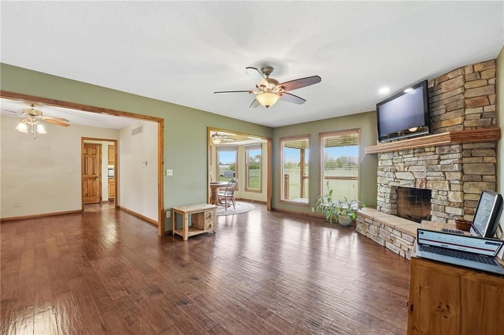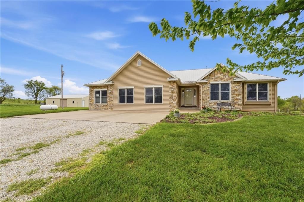 Location, Location, Location!Tucked away on a quiet dead-end road, this property offers the peace and privacy youve been looking for. Enjoy beautiful views of surrounding farmland just across the street, along with breathtaking sunrises and sunsets that make country living truly special.The home features true ranch-style, single-level living and was built by Craig West. The primary bath includes a heated tile floor for added comfort. Step outside to a covered 15 x 10 deck, perfect for taking in the views and enjoying the quiet surroundings. Additional highlights include a durable metal roof and a new air conditioning system currently being installed. The basement is stubbed for a full bath.Situated on 14 acres, this property provides the perfect opportunity to escape the city and create your ideal rural lifestyle. Its well-suited for a horse setup, featuring a 30 x 50 barn (built around 1999) with a 15 x 50 lean-to already in place and room to add stalls. Two livestock waterers are installed and can be configured to serve up to four separate fields, making it functional for a variety of agricultural uses.For added flexibility, the property can be purchased with the full 14 acres and home or combined with an additional 20-acre parcel. A proposed plat map has been included to illustrate a potential split if the parcels are not purchased together. Survey markers are visible on-site, including flagged stakes and T-posts to help identify approximate boundaries.